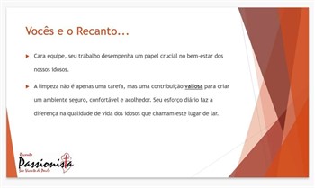 Transformando cada detalhe em cuidado: capacitando nossa equipe de limpeza para garantir um ambiente impecável e acolhedor para nossos residentes no asilo. Juntos, estamos construindo um lar seguro e confortável.